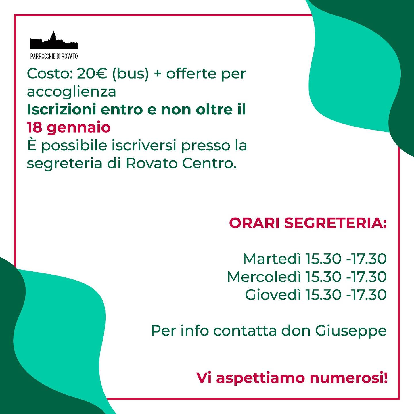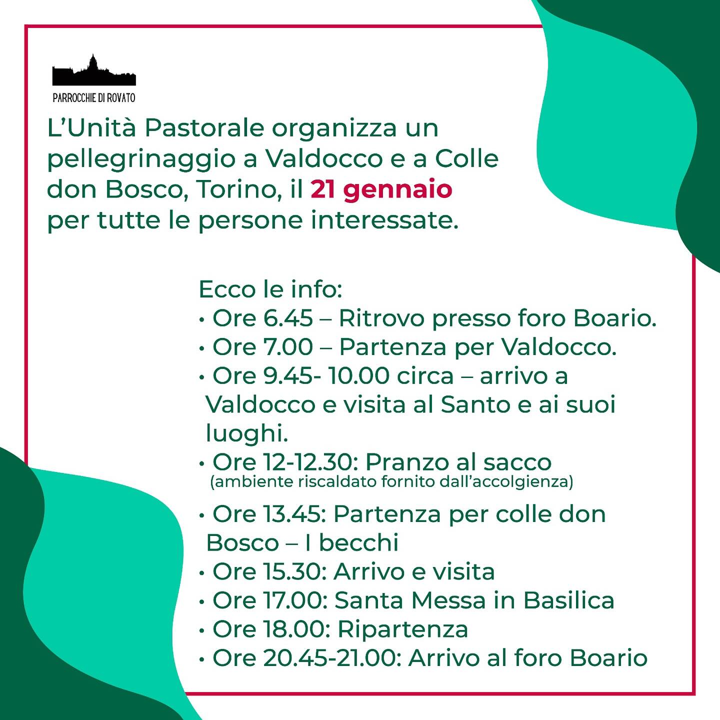 Il 21 gennaio l’unità pastorale di Rovato organizza una gita a Valdocco e al Colle don Bosco, in provincia di Torino. Il costo è di 20 euro per persona. Di seguito il programma completo.
