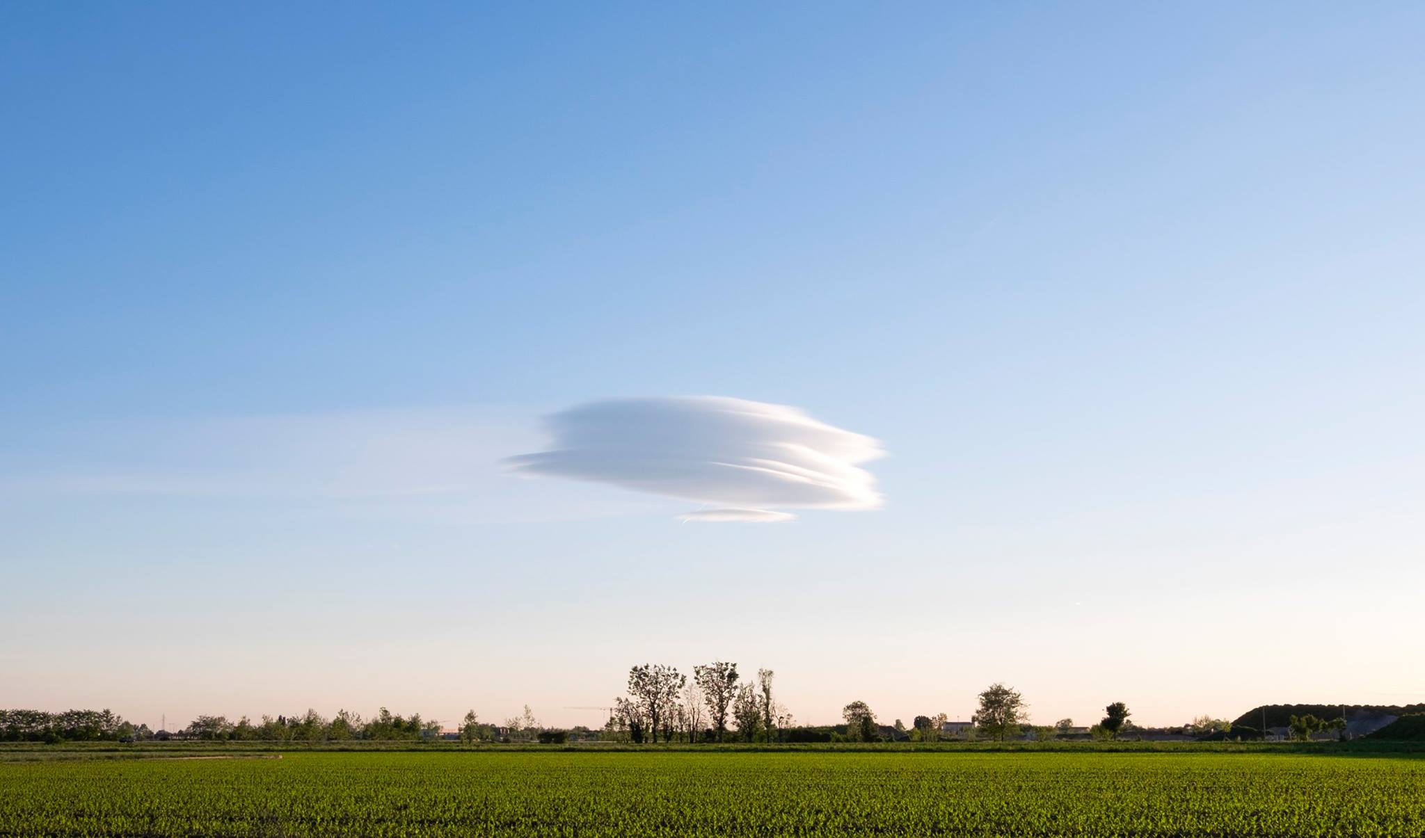 La foto è sempre di Giorgi Baioni, fotoamatore che ha gentilmente concesso al nostro sito migliaia di pubblicare (splendide) immagini di Rovato. Stavolta protagonista dello scatto è la campagna della Bargnana, con un cielo limpido in cui spunta una nuovola dalla forma curiosa, che somiglia incredibilmente a un Ufo. Ovviamente non si tratta di un oggetto extraterrestre, ma la particolarità della foto e della forma restano. Complimenti a Baioni!
