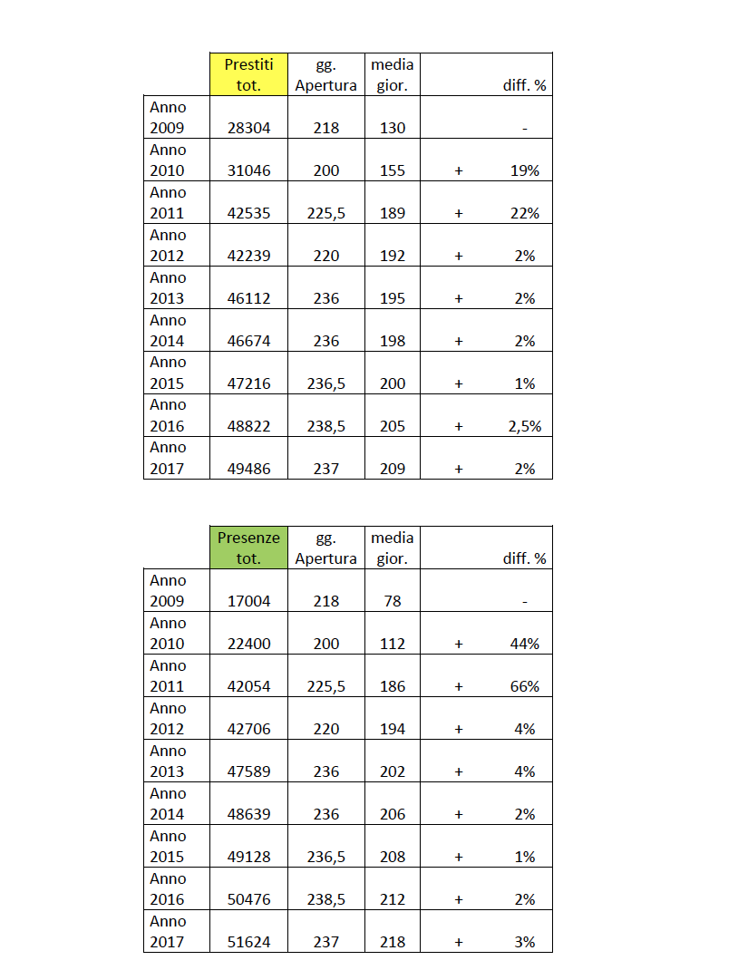Quasi 50 mila prestiti. E’ un numero record quello segnato dalla biblioteca di Rovato lo scorso anno secondo i dati ufficiali diffusi dal Comune. Lo scorso anno si è toccata infatti quota 49.486, con una media giornaliera di 209, mentre gli utenti hanno raggiunto quota 218 per giorno. Numeri in netta crescita rispetto allo scorso anno e rispetto ai precedenti. Basti pensare che – nonostante la carenza d’organico del servizio – la media dei prestiti e delle presente è più che raddoppiata in confronto a 9 anni fa: nel 2009, infatti, i prestiti erano fermi a quota 28.304.