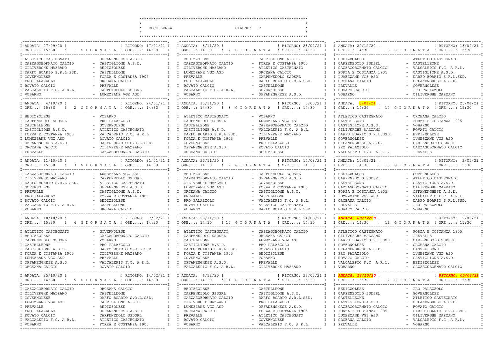 Prima giornata il 27 settembre per il Rovato Calcio, che nell’occasione affronterà il Prevalle in casa. Di seguito pubblichiamo il calendario ufficiale della squadra, che milita nel campionato d’Eccellenza (girone C).
