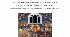Auser ha il piacere di accogliere una compagnia dialettale di Castrezzato che per onorare Dante nei settecento anni dalla sua morte ha tradotto in dialetto bresciano alcuni passi dell’Inferno. Questo lavoro è stato svolto con grande coinvolgimento ed impegno dall’associazione “Cultura e dialetto” presieduta da Silvana Brianza. Lo spettacolo, con la regia di Santo Gaffurini, è già stato messo in ...