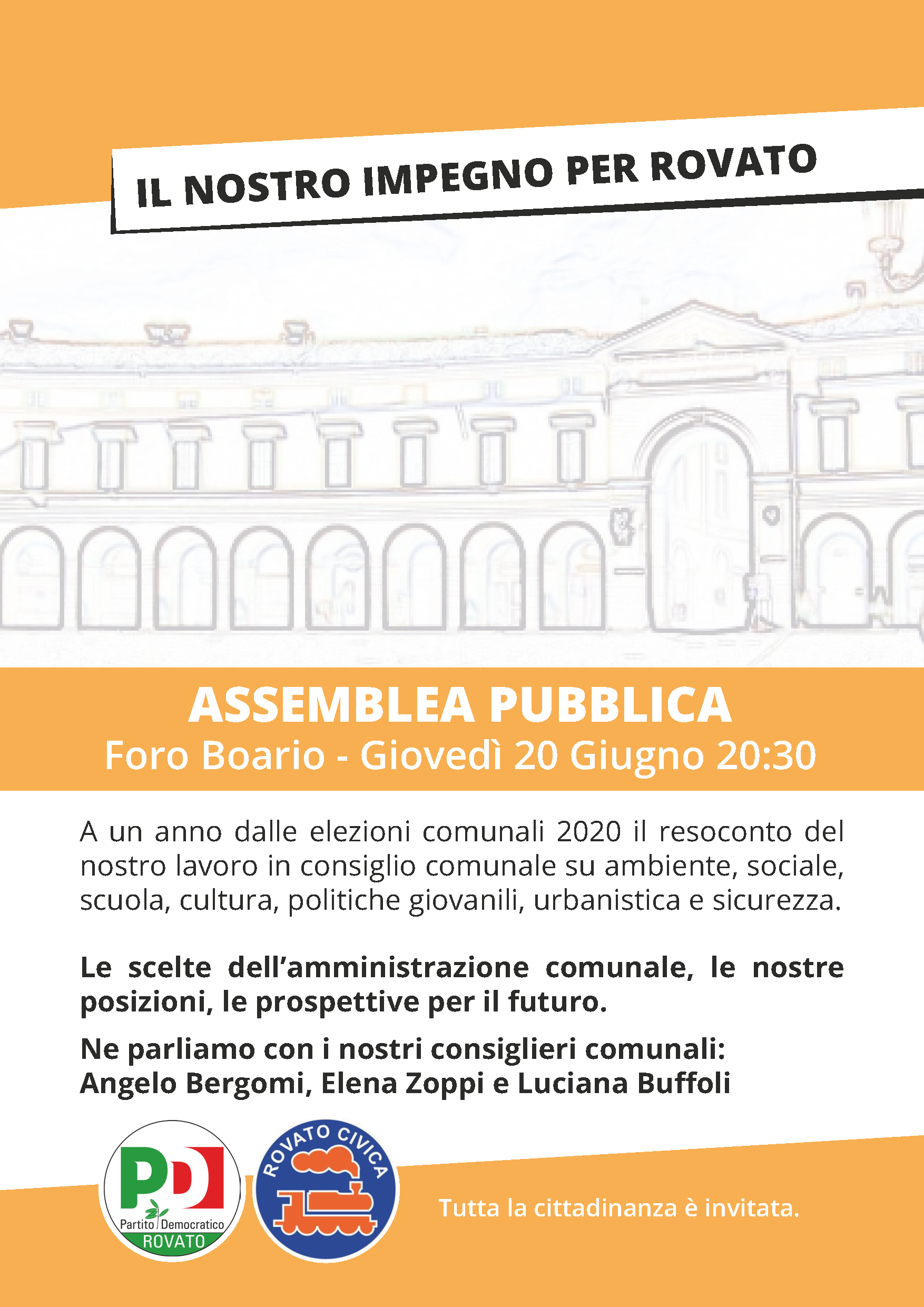 Questa sera, giovedì 20, alle 2030 la sala civica del FORO BOARIO ospiterà un’assemblea del Pd e di Rovato Civica.