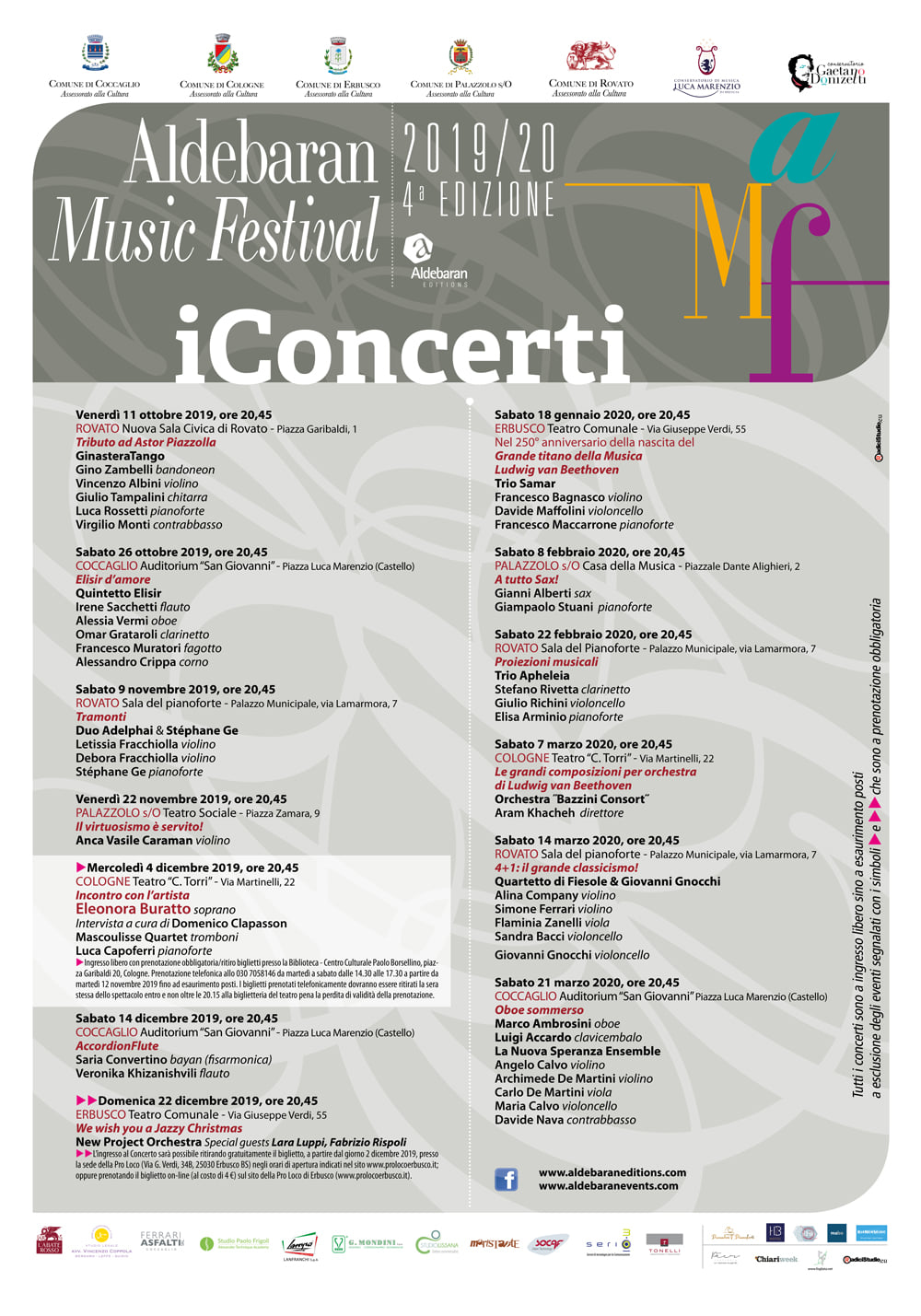 Anche quest’anno non cambierà la ricetta: nessuna preclusione a linguaggi o stili – dalla classica al jazz, dalla musica antica al tango argentino, dedicando un particolare spazio alla straordinaria produzione del “Titano della Musica, Ludwig van Beethoven” nel 250° anniversario della nascita. Accanto ad alcuni tra i più prestigiosi nomi del panorama internazionale, saranno affiancate straordinarie emergenti realtà musicali giovanili.