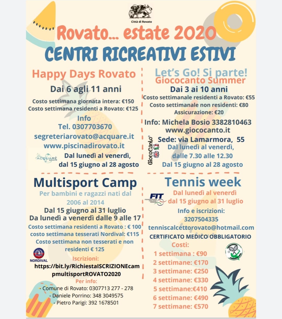 A scriverlo, in una nota pubblicata su Facebook, è il Comune di Rovato, che pubblica la locandina seguente con i centri che saranno attivi per i più giovani sul territorio comunale questa estate.