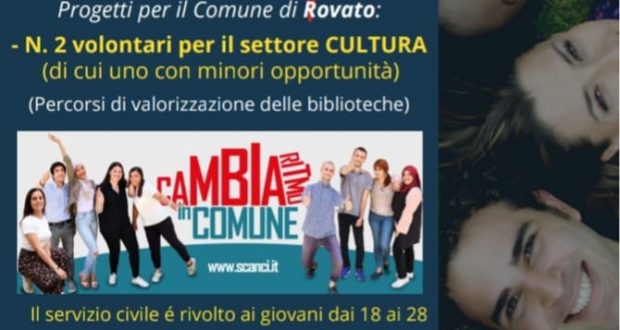 Ai giovani che vogliono provare l’esperienza del Servizio Civile, il Comune di Rovato offre la possibilità di collaborare con il settore Cultura e, in particolare, con la biblioteca. L’occasione è rivolta a due ragazzi (di cui uno con minori opportunità) tra 18 e i 28 anni e prevede un impegno di circa 25 ore alla settimana per un anno, con un contributo mensile di 443 euro. Il termine per le candidature è il 15 febbraio 2021.