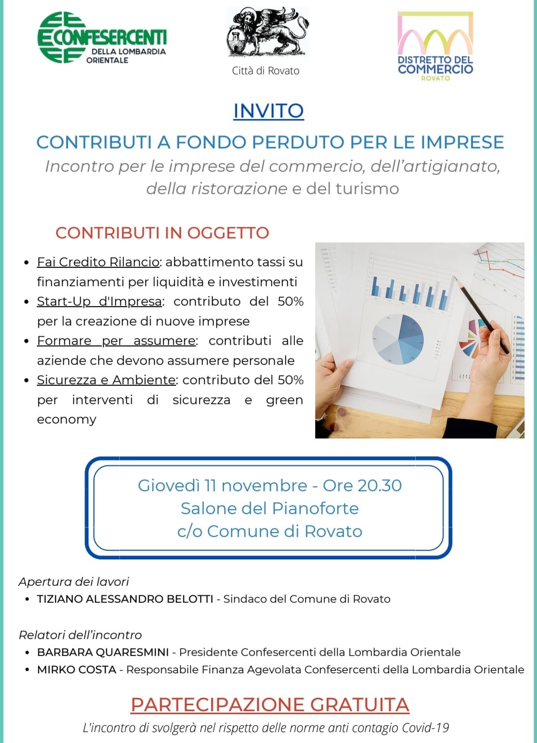 Contributi a fondo perduto per le imprese, incontro giovedì 11 a Rovato