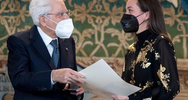 L’ex studentessa del liceo Gigli di Rovato Esmeralda Serranò, lo scorso 14 dicembre, ha ricevuto dalle mani del presidente della Repubblica Sergio Mattarella l’onoreficenza di Alfiere del lavoro. L’immagine è stata diffusa sui canali social dallo stesso istituto, che si complimenta con la ex allieva.