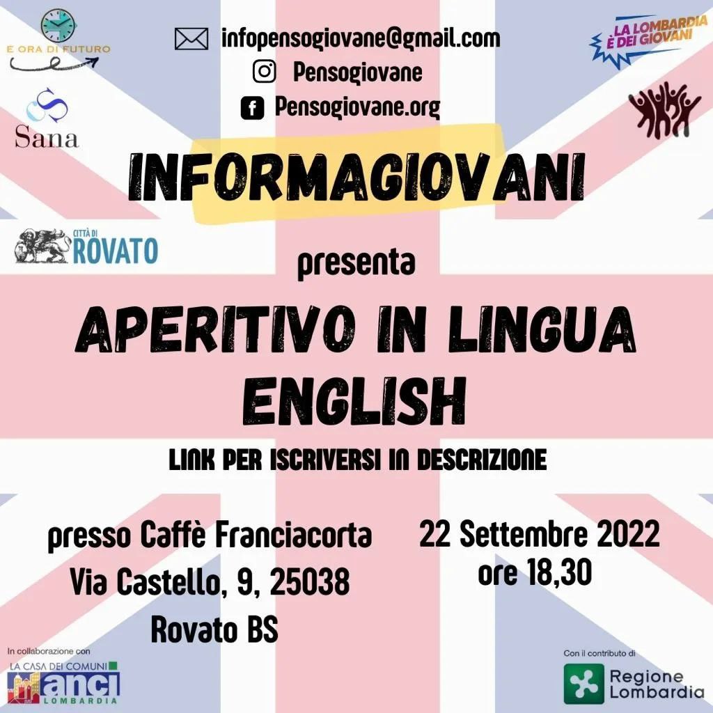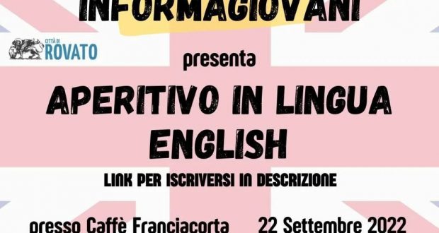 Giovedì 22 settembre, dalle 18.30 l’Informagiovani di Rovato ha organizzato un aperitivo in lingua inglese. L’iniziativa si terrà al Bar Caffè Franciacorta, in via Castello 9.