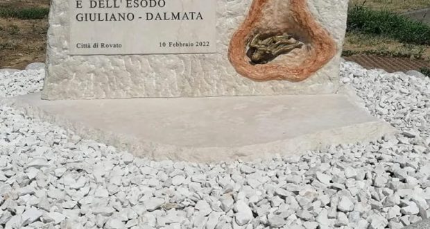 cippo marmoreo dedicato alle vittime delle foibe e dell’esodo Giuliano-Dalmata installato presso il parco di Via Gen.Carlo Alberto Dalla Chiesa a Rovato, foto da Comune