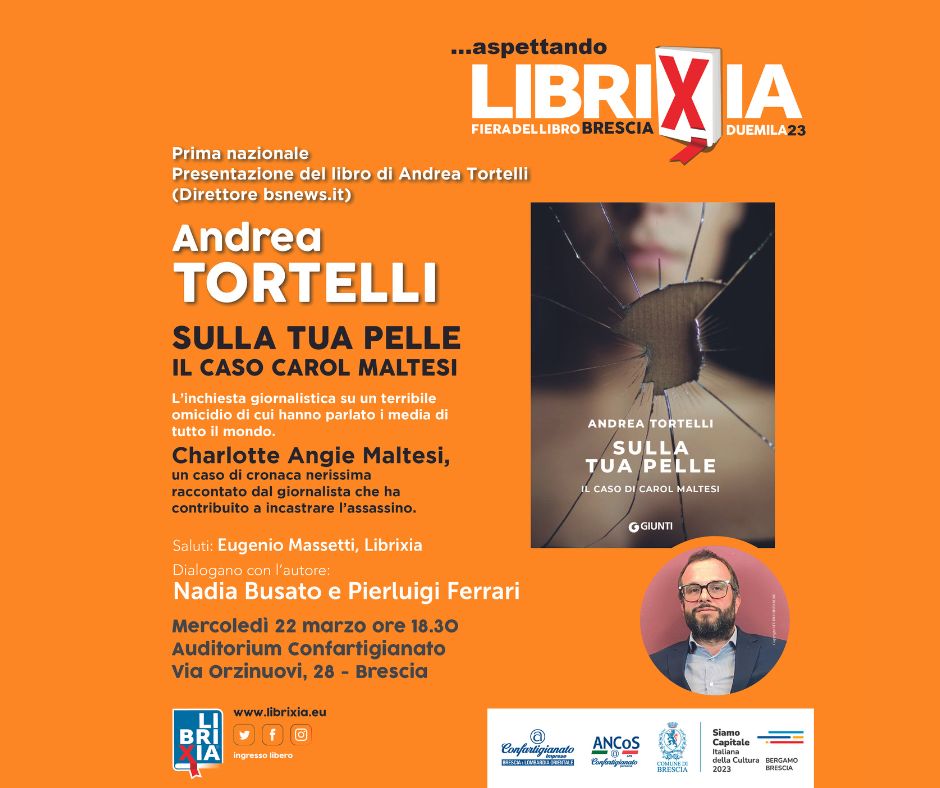 Mercoledì 22 marzo (giorno di uscita in tutte le librerie d’Italia) si terrà a Brescia la prima presentazione nazionale di “Sulla tua pelle” (Giunti editore), il libro che racconta il caso dell’omicidio di Carol Maltesi (risolto anche grazie all’indagine di BsNews.it e del suo direttore, il rovatese Andrea Tortelli) di cui hanno parlato i media di tutto il mondo.