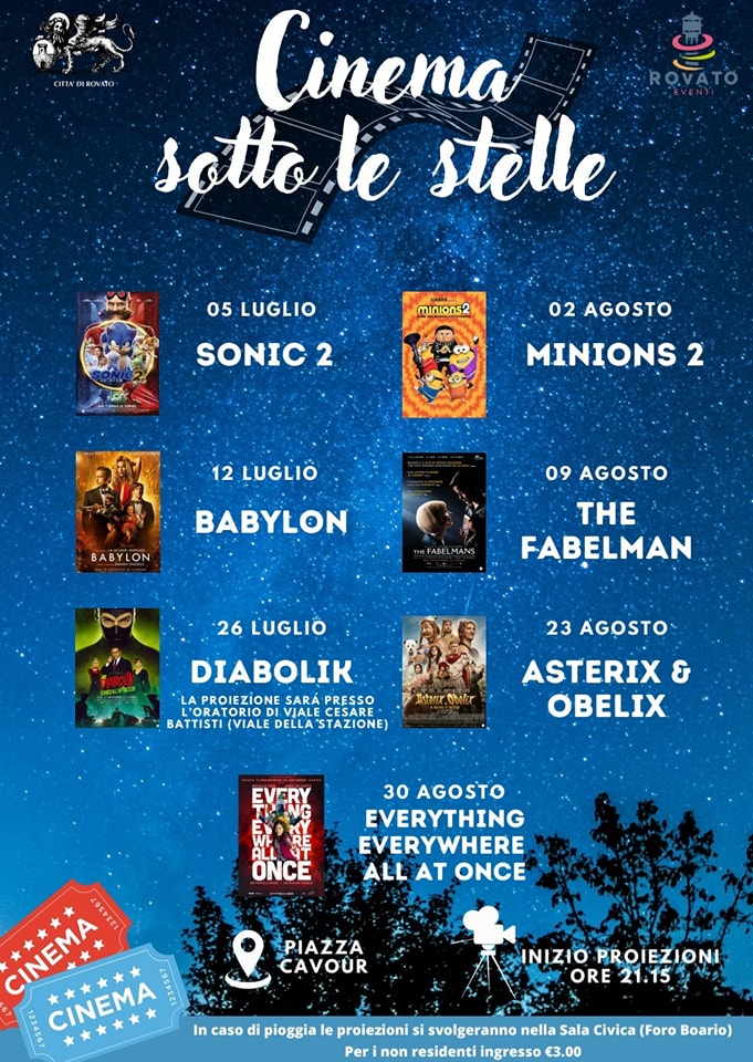 Domani in piazza Cavour torna l’appuntamento con il cinema. Alle 21.15 verrà proiettato il film Diabolik: l’ingresso è libero per i residenti e costa tre euro per i non residenti.