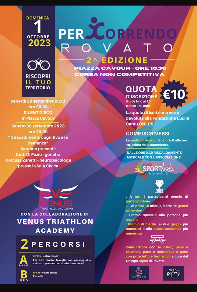Domenica 1 Ottobre 2023 torna per la seconda edizione “PER/CORRENDO ROVATO”.