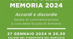Sabato 27 gennaio 2024 alle ore 20:30 presso il Salone del Pianoforte del Municipio, in occasione della Giornata della Memoria, la Scuola di Armonia “Heinrich Strickler” invita la cittadinanza alla serata di commemorazione organizzata con il patrocinio e la collaborazione del Comune di Rovato. “Accordi e discordie” è il titolo dell’evento, a cui prenderanno parte gli allievi delle classi di ...