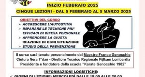Corso di “Autodifesa Femminile” organizzato dalla Proloco Città di Rovato in collaborazione con l’amministrazione comunale e l’associazione sportiva karate Genocchio. Dal 5 Febbraio per cinque settimane tutti i mercoledì sera, dalle ore 19 presso Palazzo Sonzogni in Corso Bonomelli. Iscrizione obbligatoria entro il 2 Febbraio.