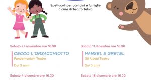 L’Amministrazione Comunale è lieta di invitare la cittadinanza alla rassegna teatrale “Pomeriggi a Teatro” a cura del Teatro Telaio. Gli spettacoli si terranno il sabato pomeriggio alle h 16.30 presso la Sala Civica del Foro Boario. Sabato 11 Dicembre andrà in scena “Hansel e Gretel” La compagnia, produttrice sia di spettacoli teatrali sia di film di animazione per bambini, è ...