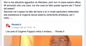 A scatenare la polemica è statoil nostro sito, con un articolo che riprendeva le dichiarazioni di Dario Fogazzi a Chiari Week. Fulvio Baresi ha postato il link di Rovato.it commentando polemicamente l’articolo e le critiche al sindaco Belotti. La replica di Fogazzi – a tono – non si è fatta attendere. LEGGETE UN PO’… FULVIO BARESI Non è mia abitudine ...