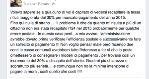 Sono arriate in questi giorni nelle cassette delle lettere dei rovatesi le “sanzioni” per il mancato pagamento della tassa rifiuti del 2015. La mora è di circa il 30 per cento. Ma più d’uno lamenta di non aver mai ricevuto alcun bollettino relativo allo scorso anno e promette battaglia. A lamentarsene pubblicamente è ad esempio l’attivista politico di centrodestra rovatese ...