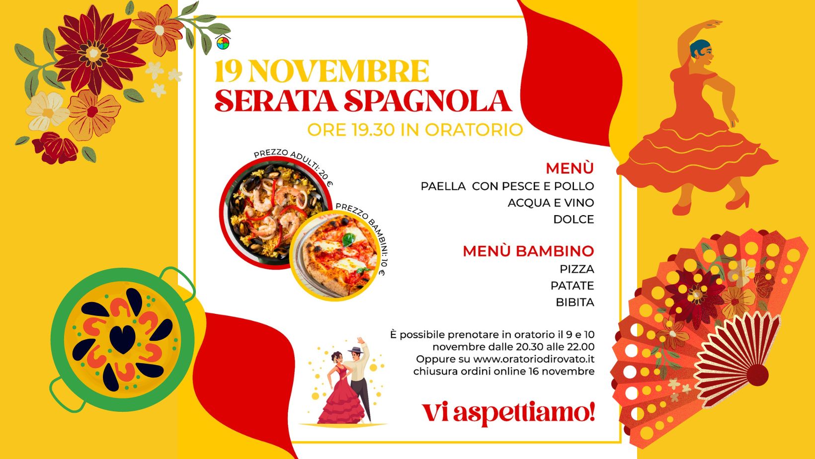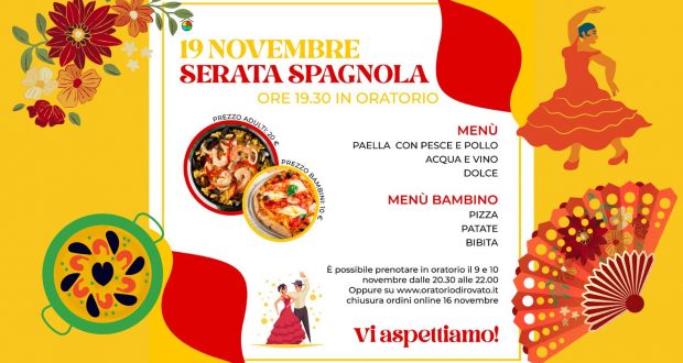 Appuntamento con la serata spagnola, sabato 19 novembre, all’oratorio di Rovato. Nella locandina qui sotto trovate tutte le informazioni utili.