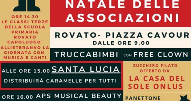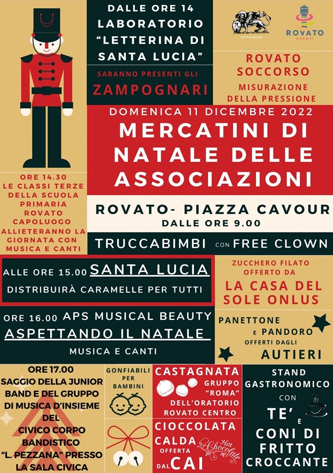 Domenica 11 dicembre, dalle ore 09 in Piazza Cavour, si terranno i mercatini di Natale delle associazioni. E non solo. Tutti gli eventi della giornata li trovate sulla locandina seguente.