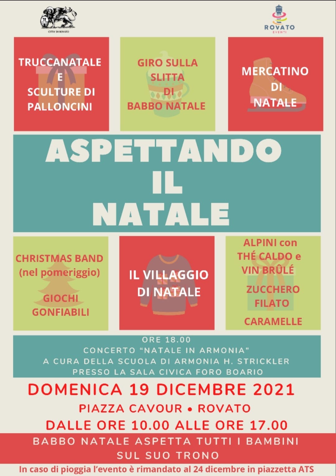 Babbo Natale e tutti i suoi aiutanti aspettano i rovatesi (e non solo) in Piazza Cavour 19 dicembre per una giornata in tema Natalizio. Tante attività in programma dalle 10 alle 19: al Villaggio di Natale si troveranno gonfiabili per bambini, truccatori, slitte natalizie, mercatini. Inoltre gli alpini saranno presenti con il vin brulè. Dalle 18, infine, si terrà il concerto della scuola Strickler.