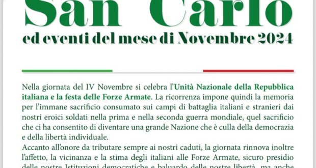 Nella giornata del IV Novembre si celebra l’Unità Nazionale della Repubblica italiana e la festa delle Forze Armate. La ricorrenza impone quindi la memoria per l’immane sacrificio consumato sui campi di battaglia italiani e stranieri dai nostri eroici soldati nella prima e nella seconda guerra mondiale, quel sacrificio che ci ha consentito di diventare una grande Nazione che è culla della democrazia e della libertà individuale. Accanto all’onore da tributare sempre ai nostri caduti, la giornata rinnova inoltre l’affetto, la vicinanza e la stima degli italiani alle Forze Armate, sicuro presidio delle nostre Istituzioni democratiche e baluardo delle nostre libertà, ma anche prezioso aiuto nei servizi di pace e di giustizia in tante parti del mondo.