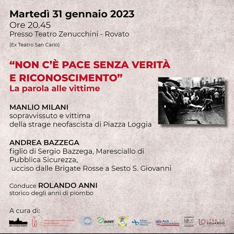 –  Ore 20.45: Evento di “PACE o guerra” (presso Teatro Zenucchini)“NON C’È PACE SENZA VERITÀ È RICONOSCIMENTO