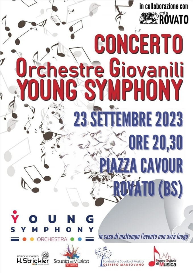 Sabato 23 settembre 2023 appuntamento con la musica a Rovato. Piazza Cavour, alle 20.30, ospiterà infatti il concerto delle orchestre giovanili Young Sumphony. Ingresso libero.