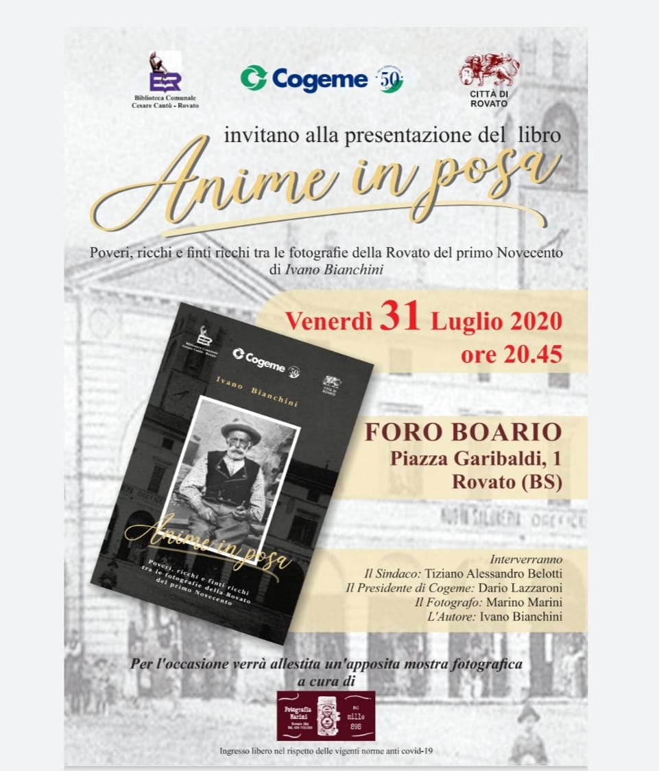 Venerdì 31 luglio alle ore 20.45 presso il Foro Boario verrà presentato il libro “Anime in posa / Poveri, ricchi e finti ricchi tra le fotografie della Rovato del primo Novecento”, scritto da Ivano Bianchini.